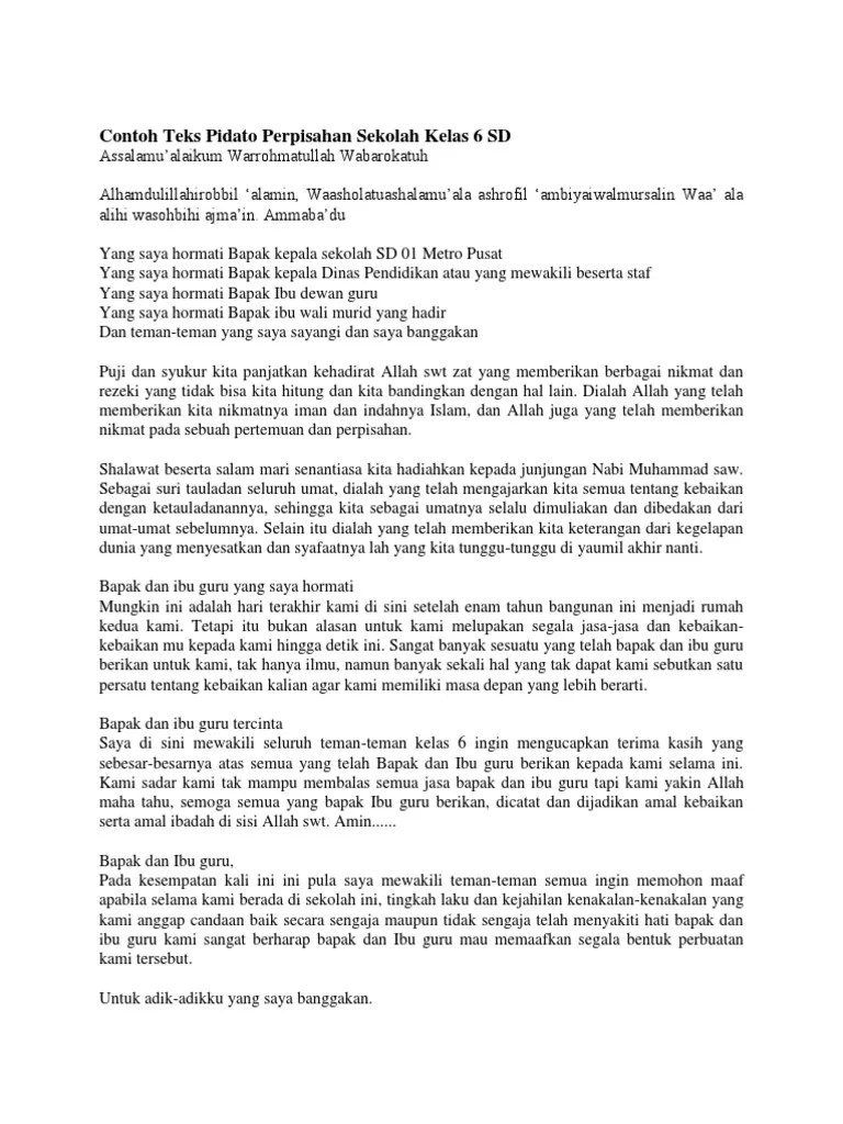 Menjelang perpisahan sekolah, biasanya guru bahasa indonesia menunjuk sesorang untuk membuat dan membawakan sebuah pidato tentang perpisahan . Pidato sering kali kita jumpai ketika ada acara penting seperti perpisahan sekolah, seminar, dan juga yang . Pidato perpisahan sering digunakan saat acara perpisahan sekolah atau lembaga lainnya. Wb yang terhormat bapak kepala sekolah. Yang saya hormati ibu wakil kepala sekolah sma budi utama bandar lampung, ibu sumiarti silalahi, m.pd.